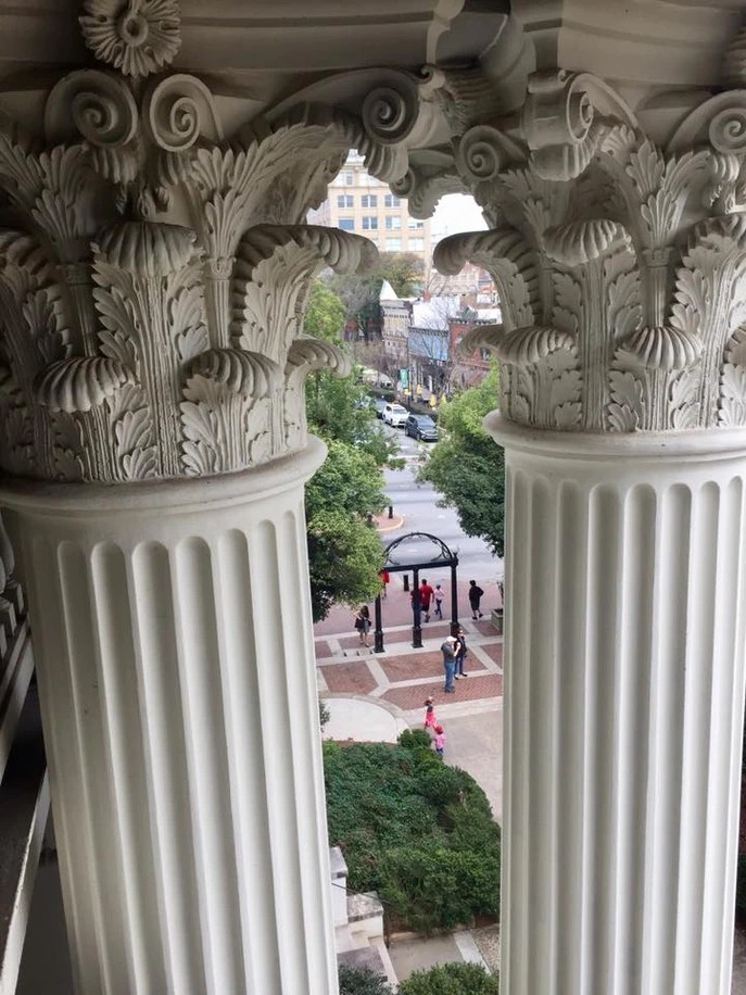 She took one last look at me, gazing lustily, and walked away, never to see me again. She became my first love. I promised never to look at another woman as I did at this dazzling sight. But then, what would I know about a human emotion? After all, I am just a stately column supporting the Rotunda.
