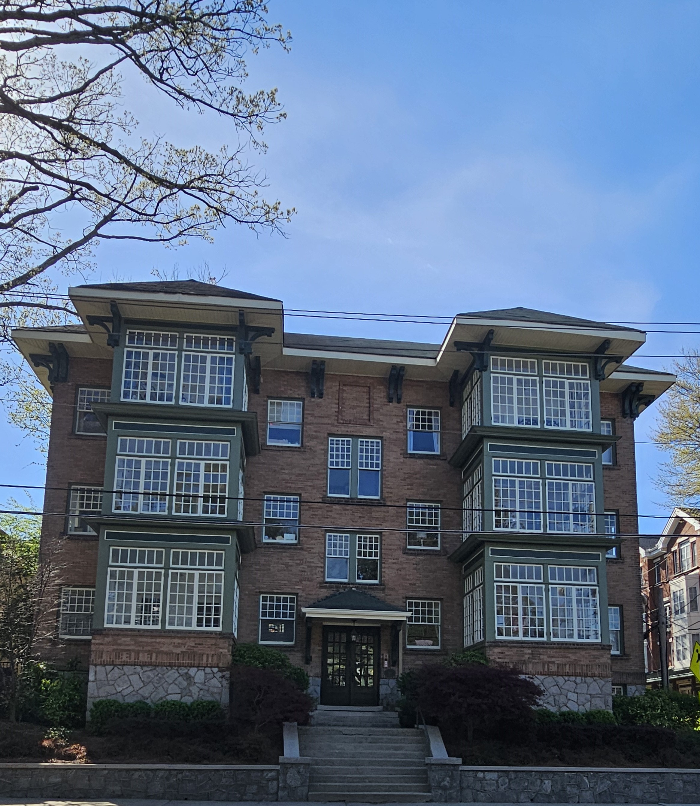 A resident of the Wilburn House condominiums, formerly known as the Piedmont Park Apartments, gave us a tour of the building and her own condominium. The three-story craftsman-style apartment building was built in 1913, and overlooks Piedmont Park. In 2000, they were turned into condos, and with two new buildings designed to match Wilburn’s original design, the complex was renamed Wilburn House.