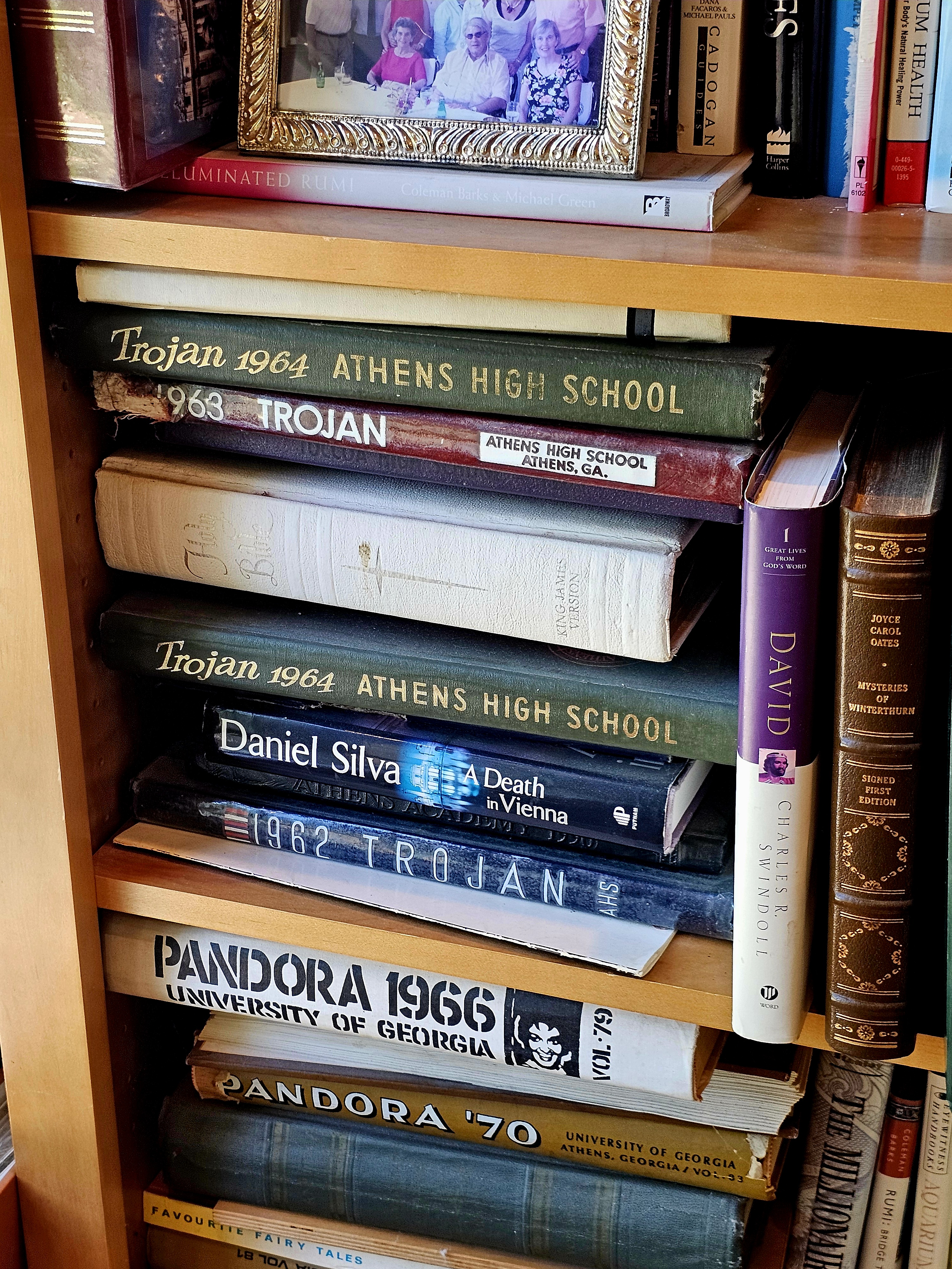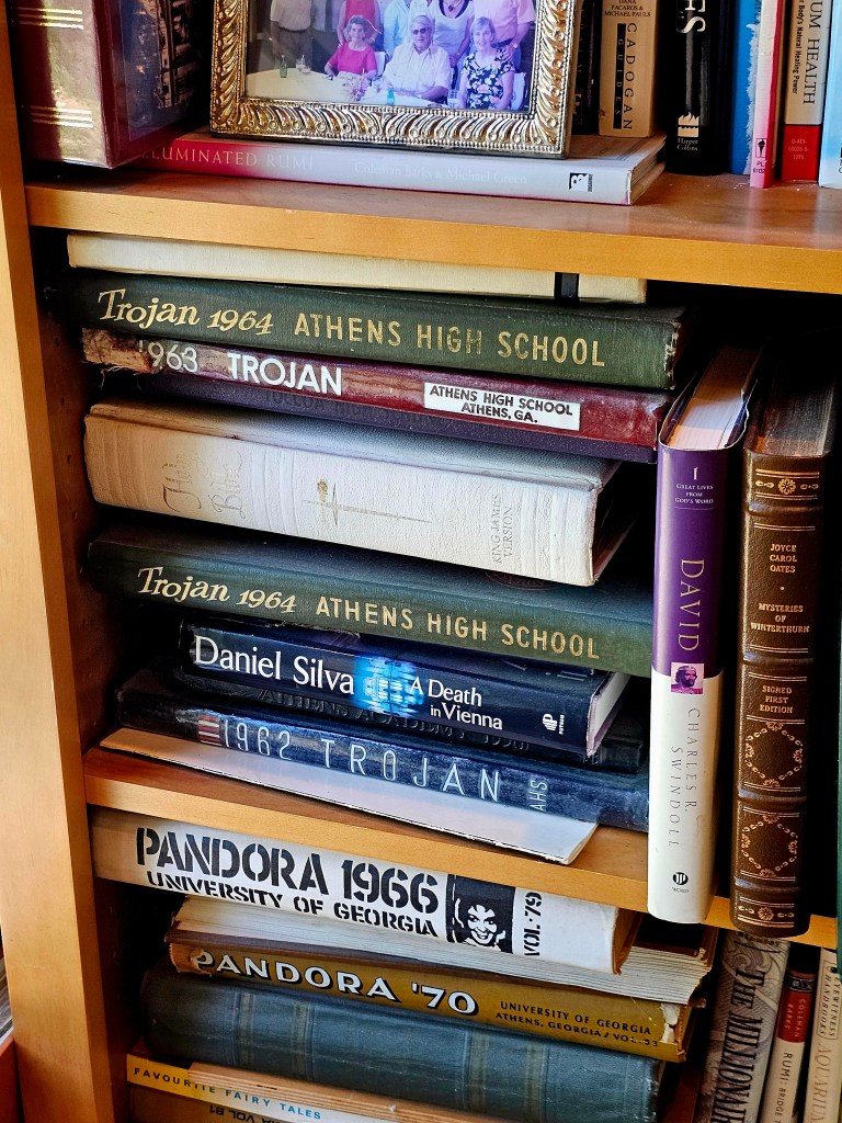 By the 1970s, it had been a boarding house and was in bad condition. It was saved from demolition in the 1970s, and fully restored by 2000. Another home on Henderson had a signed Widespread Panic print, which seemed apt since Panic in the Streets happened on April 18, 1998, 26 years and a day before I saw the poster. And of course, I can never pass up a bookshelf!