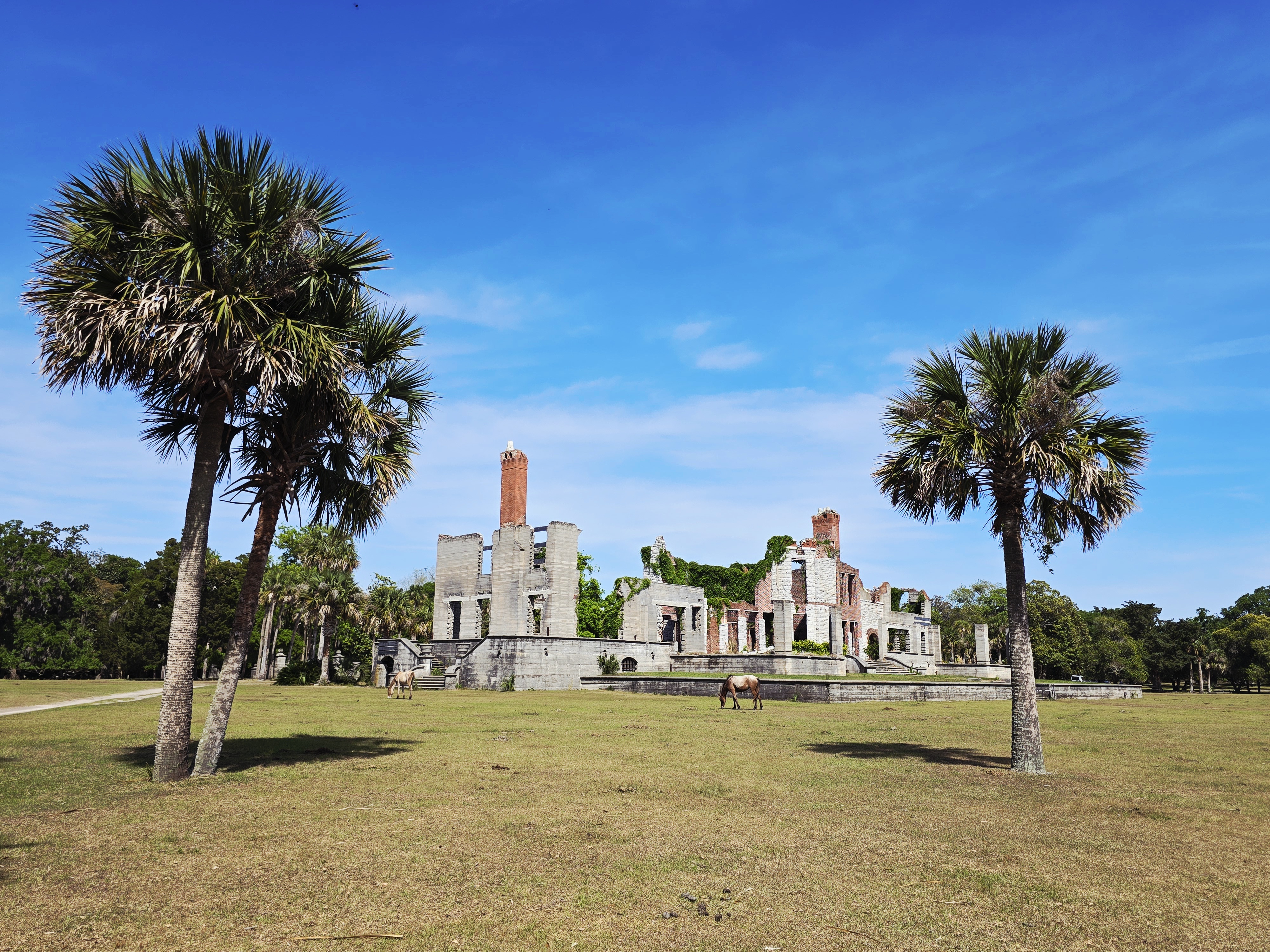 Before I tell you about the adventures, food, and tours I took over the two days I spent on the island, you need to know some history about Cumberland Island. The first people to live on Cumberland Island included several indigenous tribes, including the Mocama, who spoke the Timucuan language, like those that along what is now the Florida coast. By the 16th and 17th centuries, Spanish missionaries occupied the mainland and the barrier islands along the coast, including Cumberland. When the Spanish first arrived in 1550, they built a mission known as San Pedro de Mocama. Other missions built during Spanish occupation included Puturiba and San Phelipe. The Spanish brought horses, Russian boar and cattle. The feral pigs are a combination of native boars and the Russian boars brought by the Spanish. The wild horses on the island are thought to be descendants of those Spanish horses; some say the horses are descended from those left behind by British soldiers, and others believe they are from polo horses the wealthy families kept.