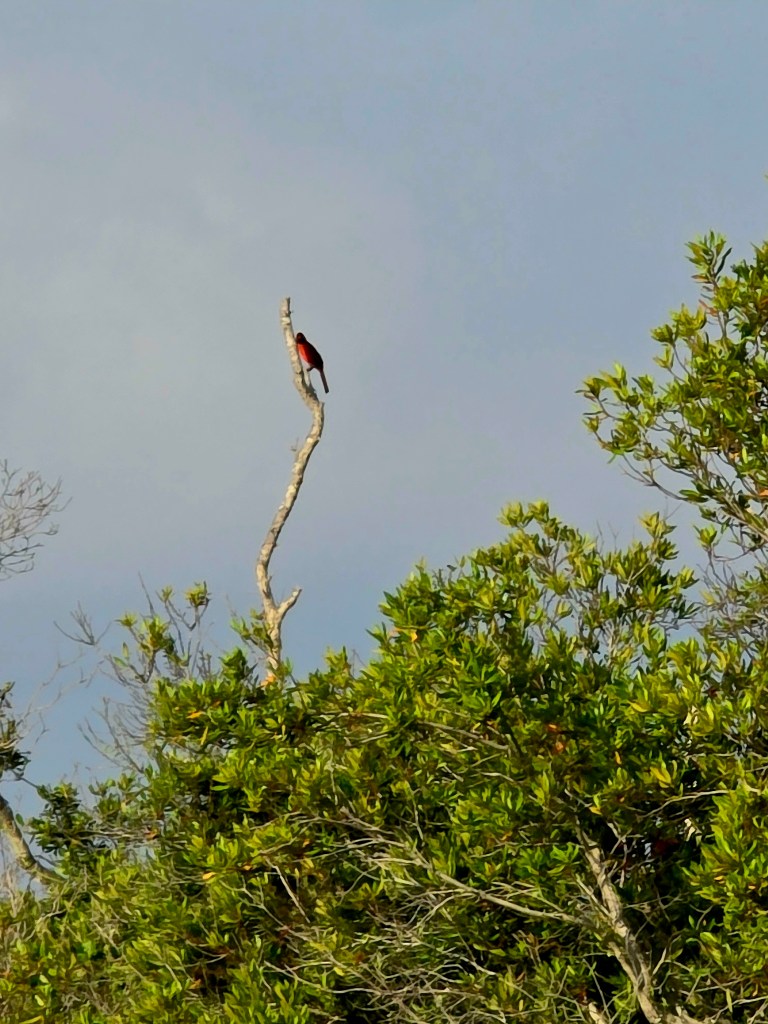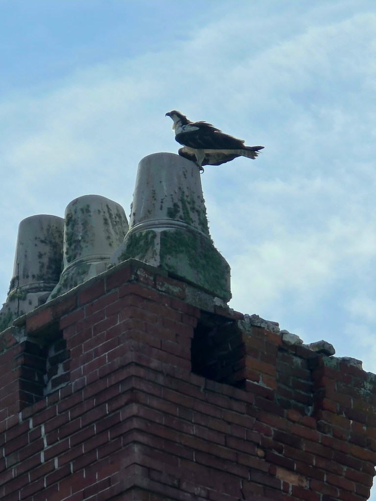 The tours of Plum Orchard and Dungeness ruins that I took on Wednesday were amazing. The guide for both tours, Christina, definitely knew her history about the island and the families who lived on the island. She was also well-versed about the animals, birds and reptiles that we encountered. Christina pointed out a dead palm tree that had woodpecker holes, an osprey nest and peregrine falcons perched on the chimney of the Dungeness ruins, a turkey near the Dungeness outbuildings, as well as birds based on the calls that she heard. After we returned to the inn, I saw the tours posted for the next day, and saw a nature tour that Christina would be doing at 7:30. Since the ferry wouldn’t leave until 10:45, it was perfect timing.