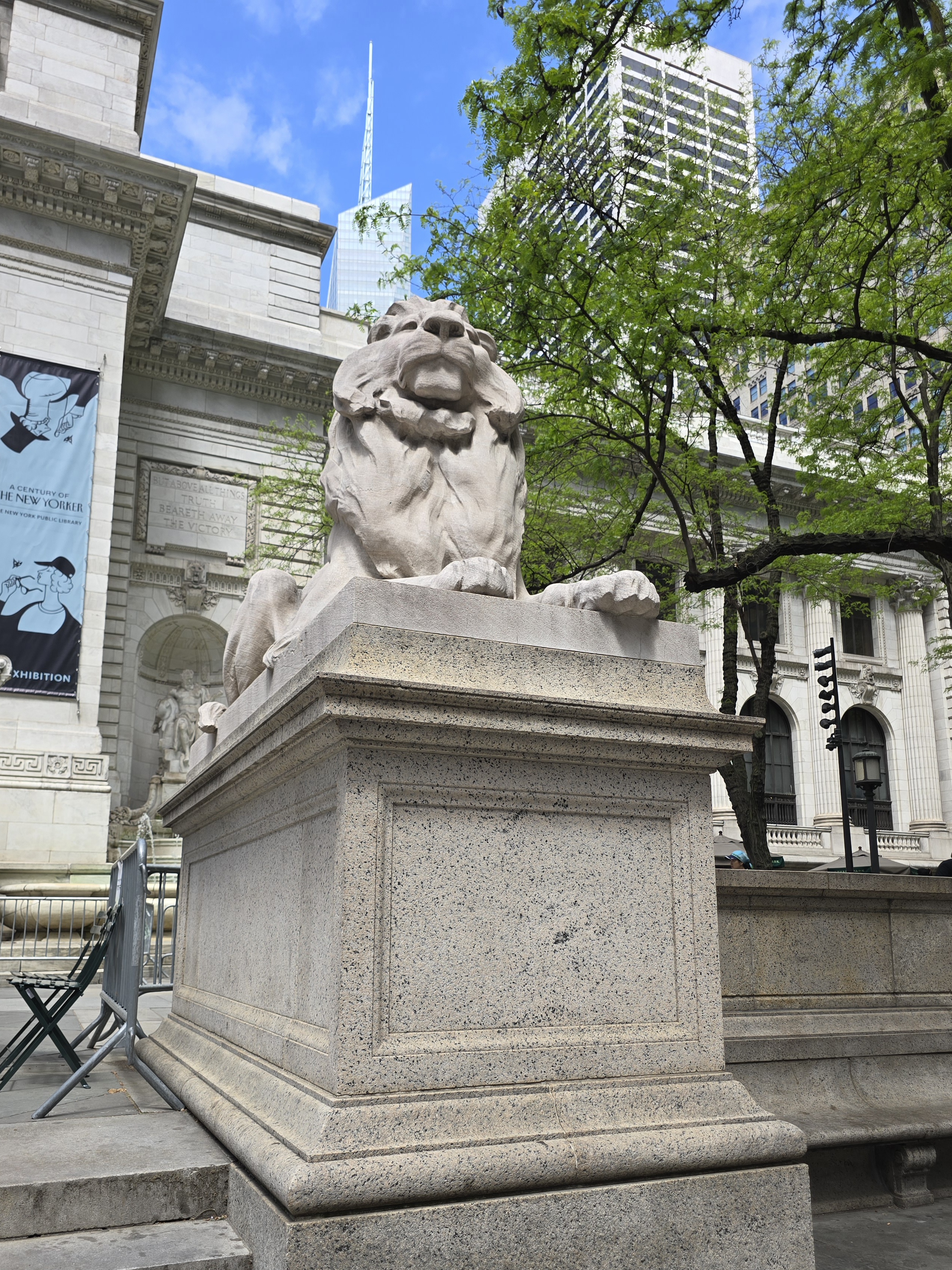 The Main Library was the largest marble building upon its completion. The two lions that guard the front entrance, Patience and Fortitude, were designed by E.C. Potter and carved by the Piccirilli brothers. Made of Tennessee marble, they were originally named Leo Astor and Leo Lenox after the two founding benefactors, and evolved into Lord Astor and Lady Lenox though they are both male. In 1930, Mayor Fiorello La Gaurdia referred to the lions as Patience (on the left if you’re facing the main entrance) and Fortitude because he thought New Yorkers would need both characteristics to survive the Great Depression. The lions have undergone several restorations since 1975, the most recent in 2019.Â