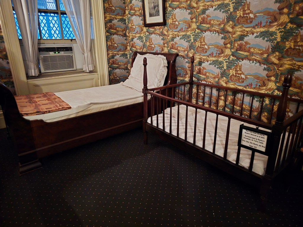 The Theodore Roosevelt Birthplace Home opened in 1923, and included furnishings donated by Roosevelt’s widow, Edith, and his two sisters. One side of the center of the museum outlines the history of the Roosevelt family arriving in New York from the Netherlands to the lives of Theodore Sr and his father, Cornelius Van Schaack Roosevelt. The other side details T.R.’s childhood, his collegiate career at Harvard, his marriages to Alice and Edith, and his children. Along the walls, I learned more about Roosevelt’s political career, before, during and after his presidency. At the back of the museum is more detail about T.R.’s presidency, including an assassination attempt during his 1912 presidential campaign.