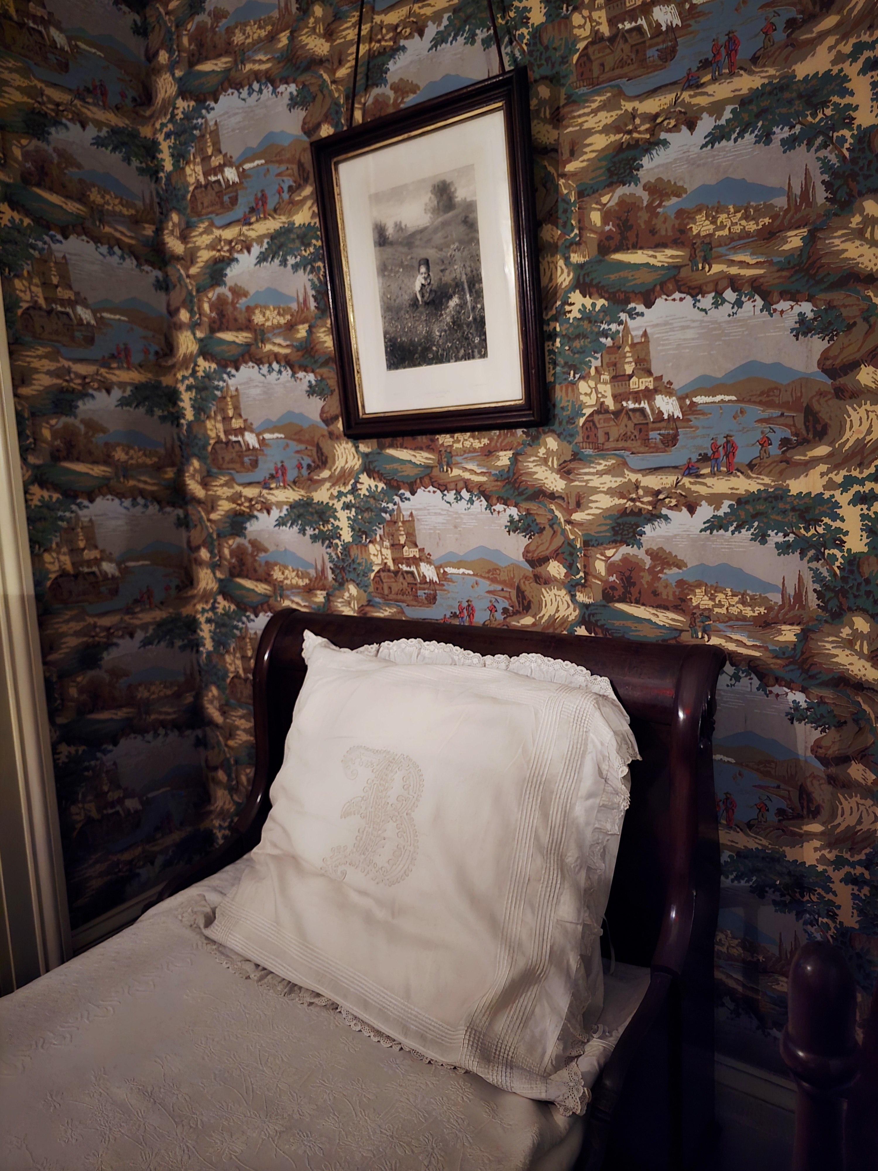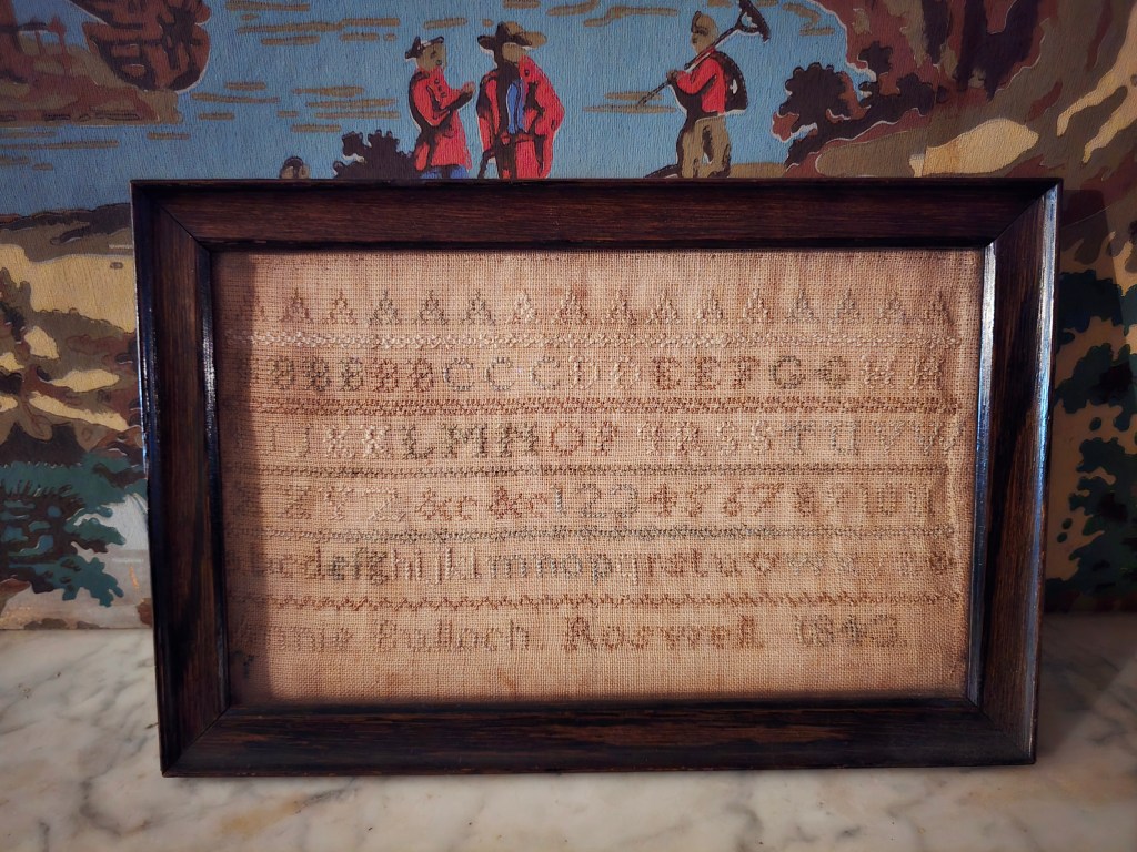 Theodore Roosevelt, Jr, or Teedie or T.R. as he liked to be called, was born to Theodore Sr. and Martha Bulloch Roosevelt on October 27, 1858. Nicknames were big in the Roosevelt family: his father went by Thee, and his mother, Mittie. Mittie was born in Georgia, and grew up in a grand estate in Roswell, which you can visit – Bulloch House where the Roosevelts were married. I was there in March! Thee Roosevelt owned a glass manufacturing company, which was known for its glass lamps and stained glass windows. There are examples of this work all over the home! Thee was also a great philanthropist, helping to found the Metropolitan Museum of Art, the American Museum of Natural History, and a children’s orthopedic hospital. The Roosevelt household was not like those of many high society homes. The children were allowed to gather with the family and not kept with the nanny as with most wealthy families. In fact, the nanny was Mittie’s sister, Annie! In her room, you can see items from Annie, including a cross-stitch sampler she did while living in Roswell.