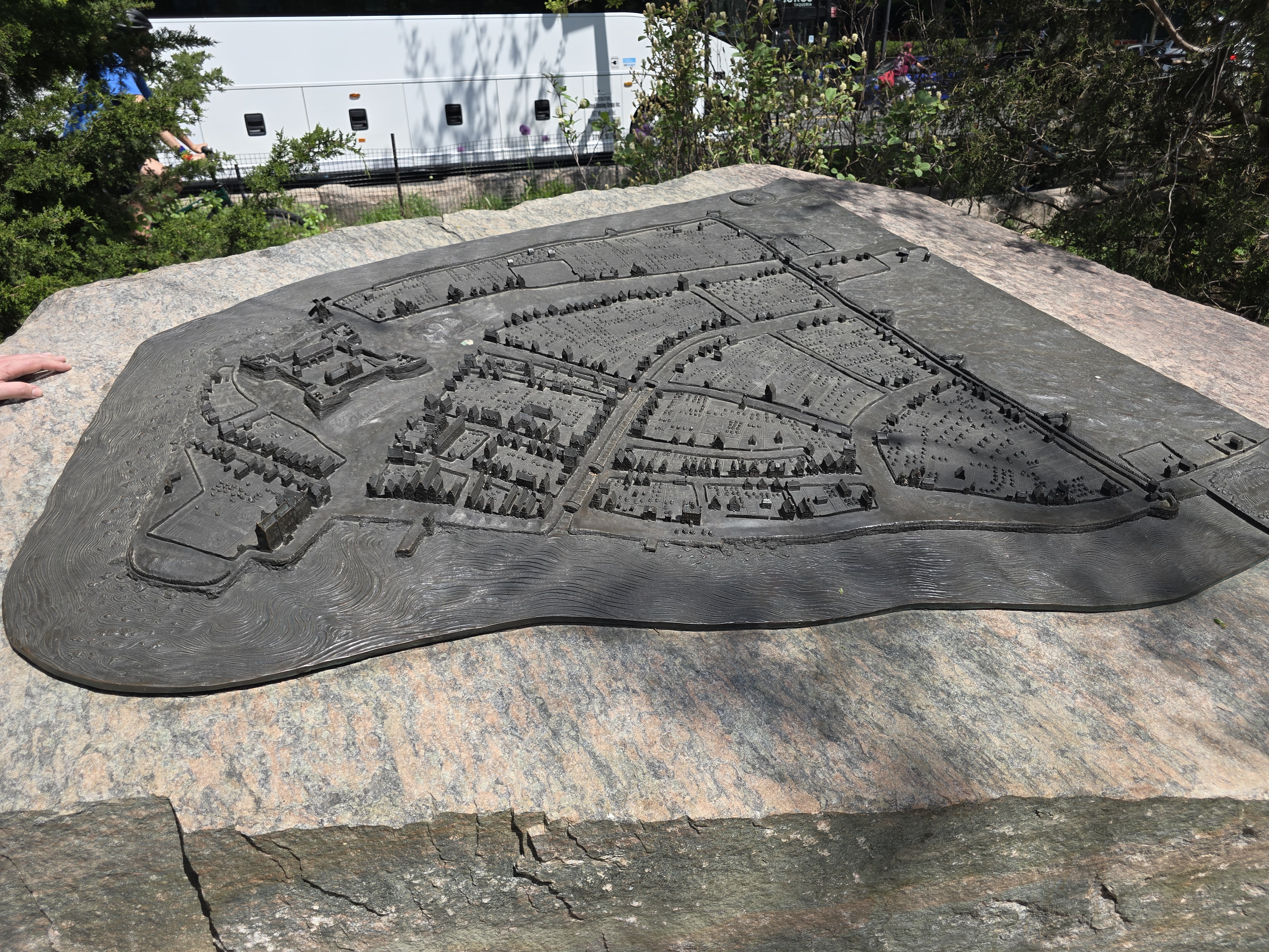 We walked down towards Battery Park, where we saw the James Watson House, as well as a bronze relief map of the area to show what it looked like in the 17th century. I’ve been fascinated by the James Watson House since my first visit to NYC in 2008. It astounded me that this 18th century home survived demolition, and it is surrounded by glass-covered skyscrapers.Â