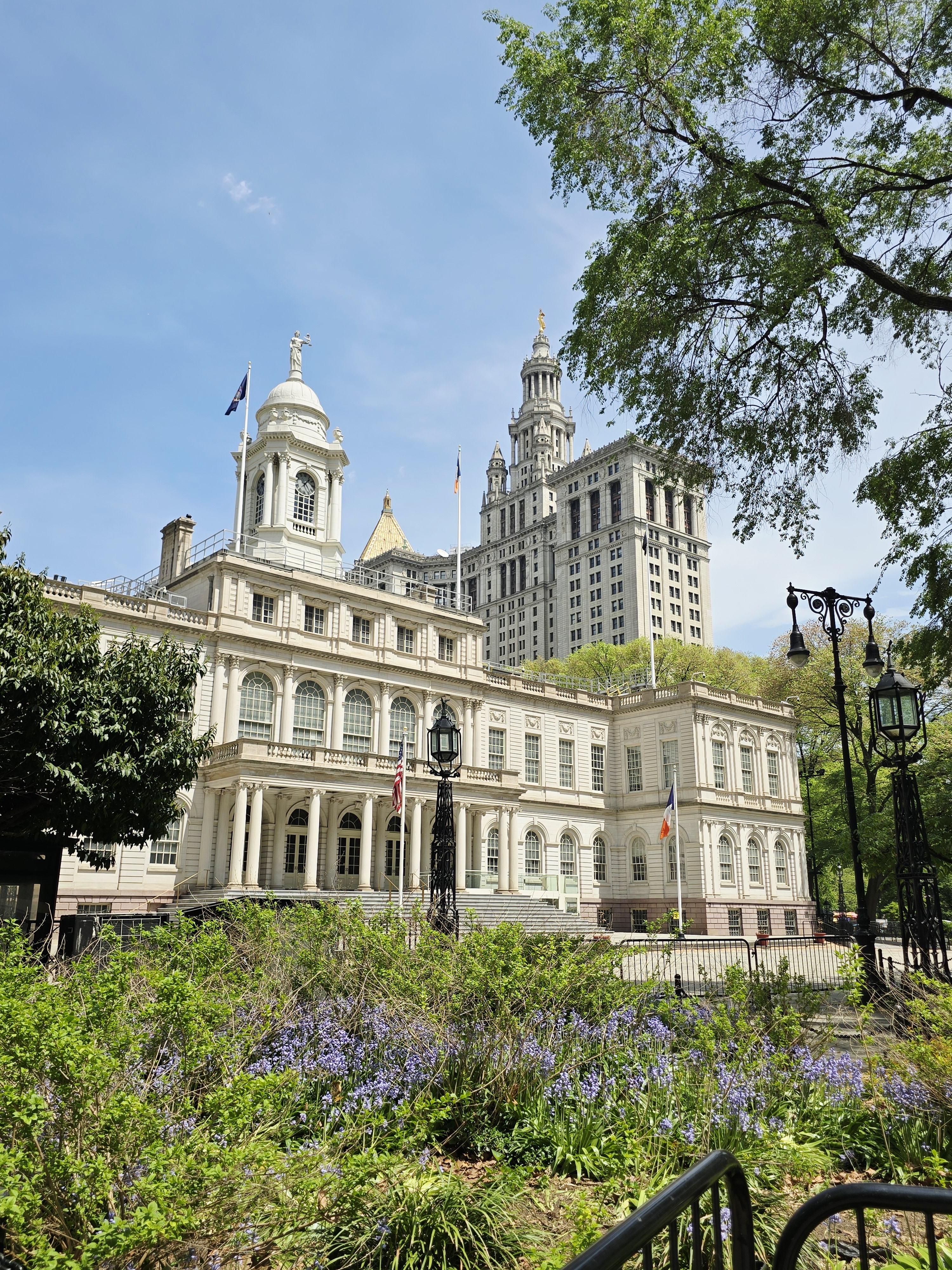 We walked over to the City Hall and Municipal Buildings. The third City Hall was built between 1803 to 1812, designed by Joseph-François Mangin and John McComb Jr. (of James Watson House and Hamilton Grange fame) in the French Renaissance Revival on the outside and Georgian Revival inside. The 1812 City Hall building is still used to this day. It was added to the National Register of Historic Places in 1966, and to the NYC Landmarks in 1966 for the exterior and 1976 for the interior.Â