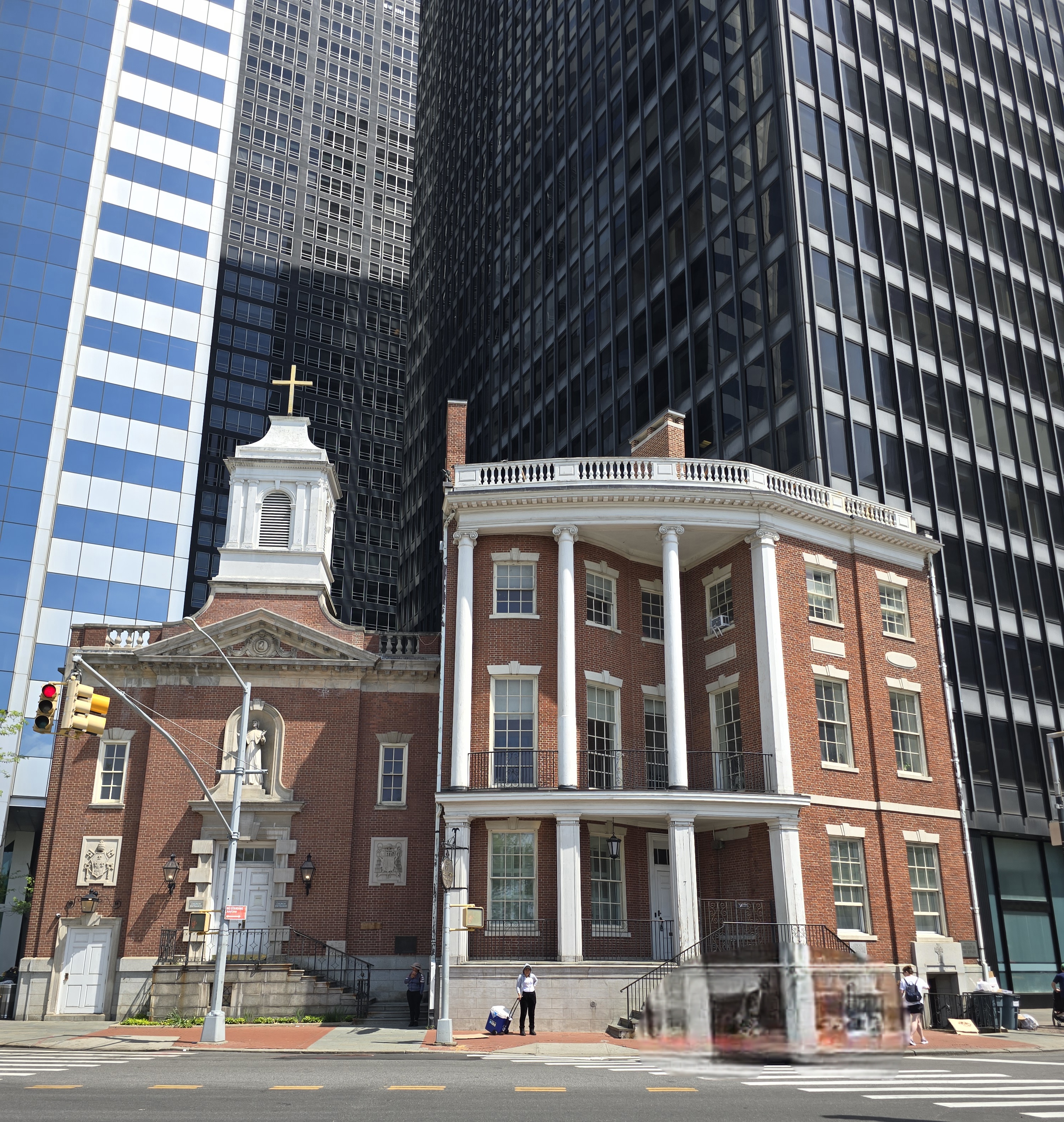 Moses Rogers bought the house in 1806, and combined it with the house next door. This house sat further back than Watson’s, so Rogers added the colonnade to bring the two houses together. The architect for the original Watson House is unknown, but John McCombs Jr designed the house with the colonnade that is next to the church. John McComb Jr also designed the 1824 City Hall and Hamilton Grange, the Harlem home of Alexander and Eliza Hamilton. The new homeowner of the James Watson House, Moses Rogers, was the brother-in-law of Archibald Gracie, who built Gracie Mansion, now the Mayor’s home.